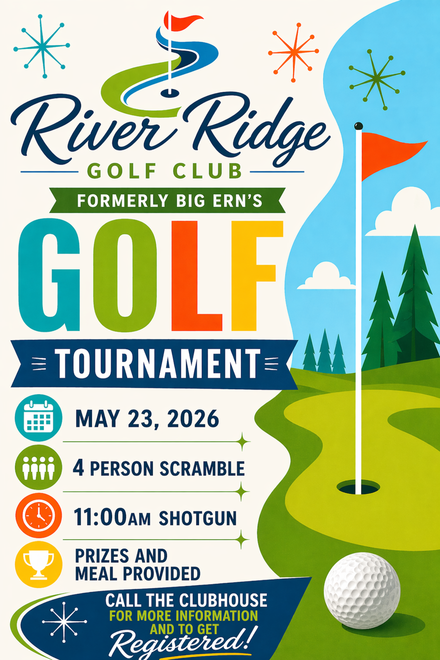 At River Ridge, we're committed to providing you with a great golf experience with small-town hospitality mixed in. We're confident that you'll enjoy our nine great golf holes, full-service clubhouse, outstanding practice facilities (complete with practice green and driving range), and friendly staff. All of these will combine to make your golf experience at River Ridge a memorable one!
